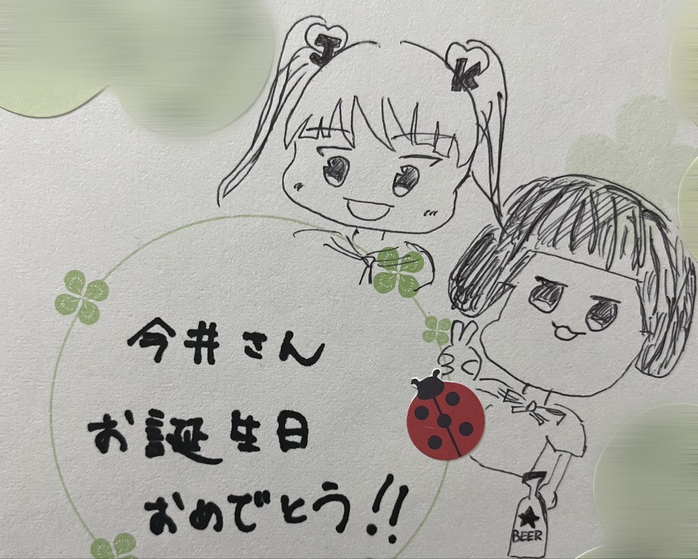 事務所でもそもそご飯食べてたら佐藤さんから「お誕生日おめでとうございます!🎶」といきなり寄せ書きを渡されて噎せそうになる。キャストさんたちの直筆のメッセージ。いつの間に…。