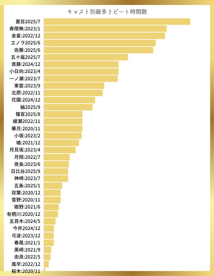 ①目標時間数(月間リピート時間10時間以上)を達成したキャストがランキングの対象