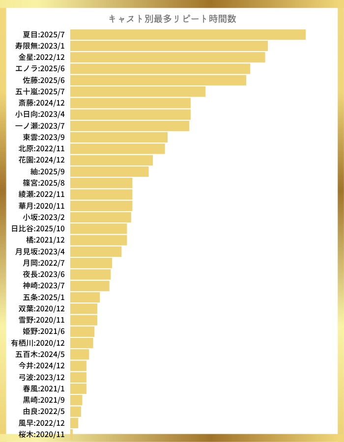 ①目標時間数(月間リピート時間10時間以上)を達成したキャストがランキングの対象