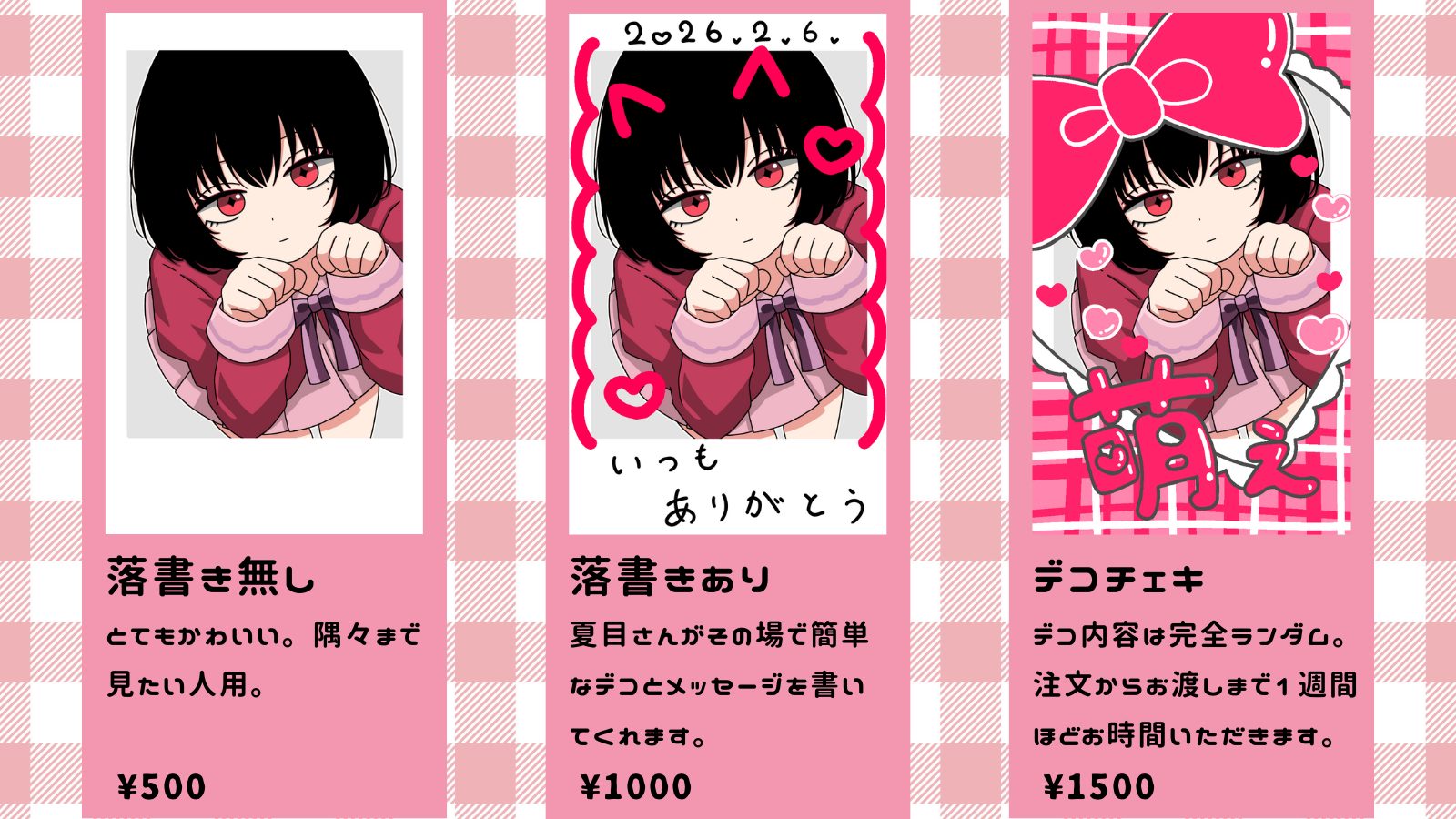 この1週間こそこそ準備してた「チェキ風カード(なつももver)」がついに発売決定。今回は前回と違ってこのためだけに書き下ろしたイラストを使用。めちゃ可愛くないですか?