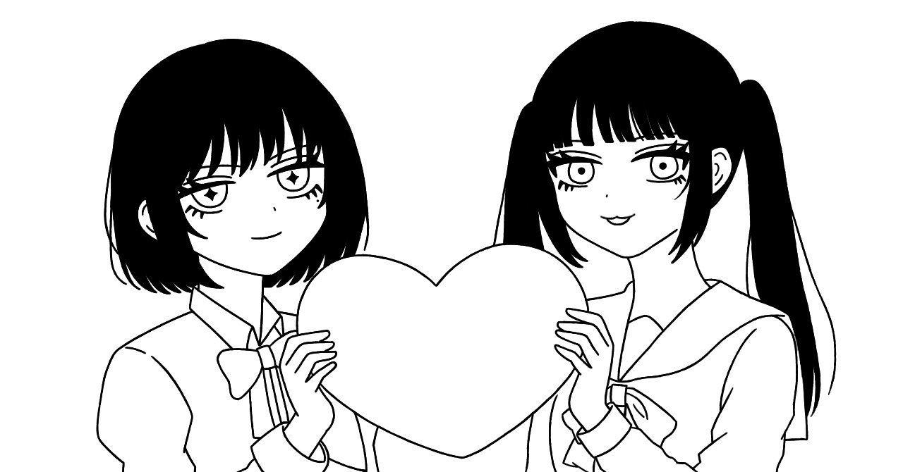 俺は⬆️みたいなちょっとダークなモノクロの絵柄が好きなので色を付けるか結構迷ったんだけど、「これ見た新規おぢは『この2人ってちょっと怖い子なのかな…?」って思っちゃうかも…」と思い渋々カラーイラストに。