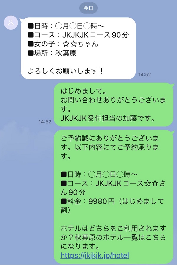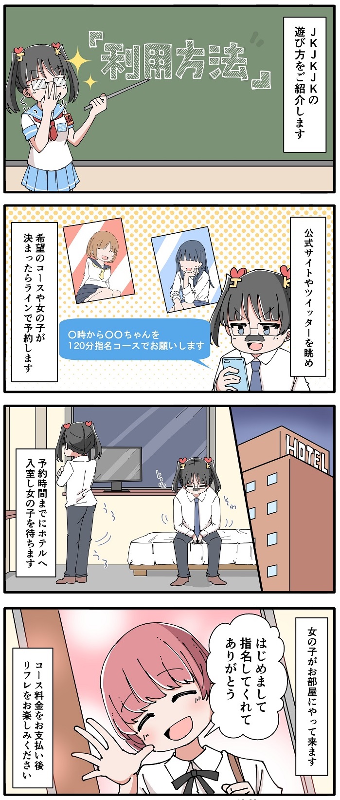 はじめてのお客様の9割以上が「JKJKJKコースのはじめまして割」をご利用されます。新規のお客様が1番お得にご利用いただけるおすすめのコースになります🉐