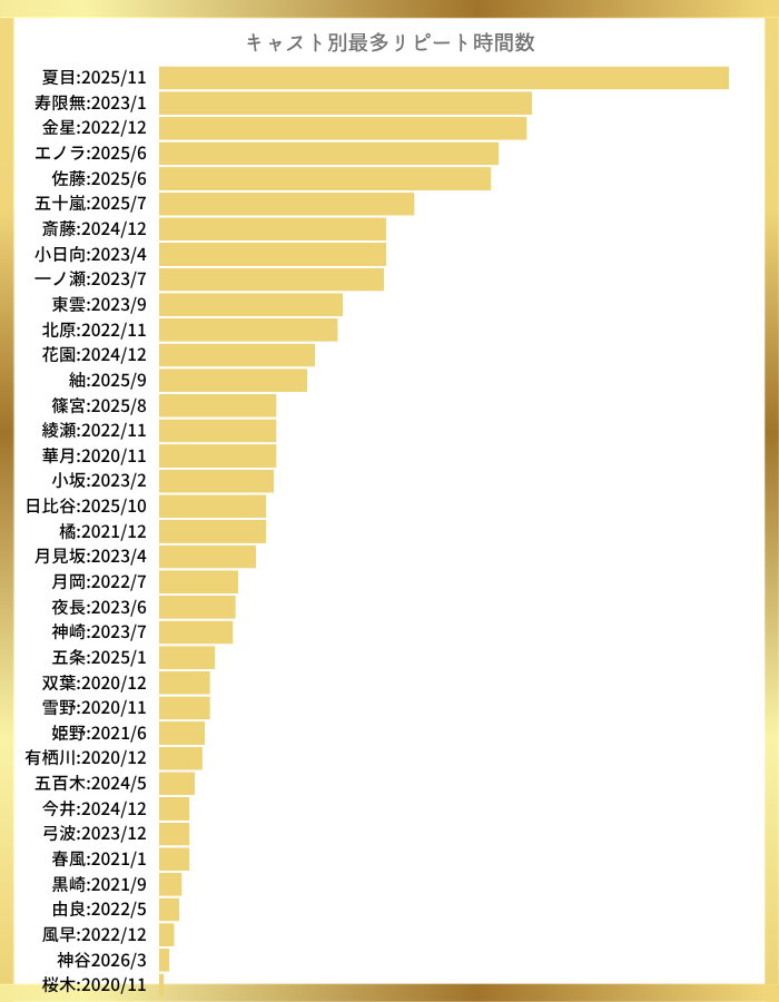 - 2026年3月:夏目 百(通算11回目)
